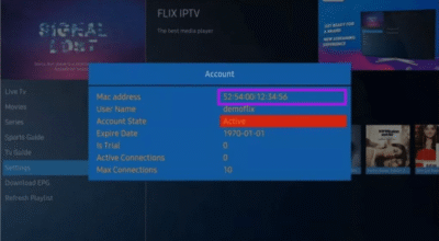 If you didn’t write the mac address, you can find it by going to the menu on the left, navigating to Settings and in the next menu, scroll to User Account.