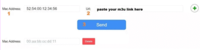 3. Fill in the requested informations, the mac address and your m3u link then click on Send.